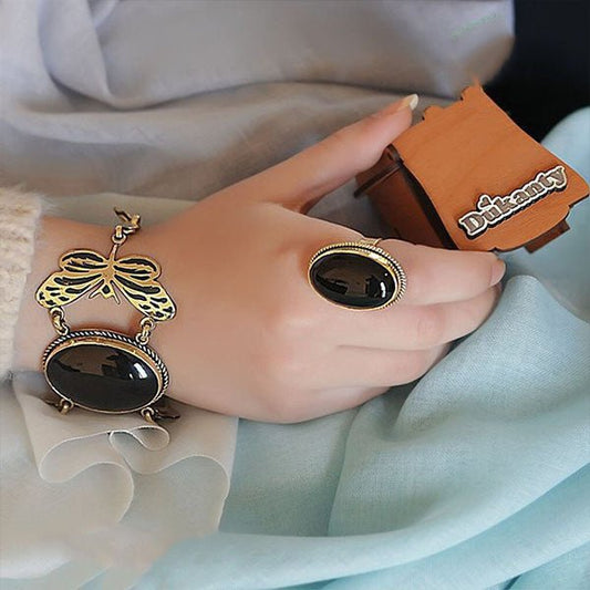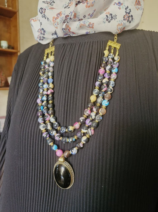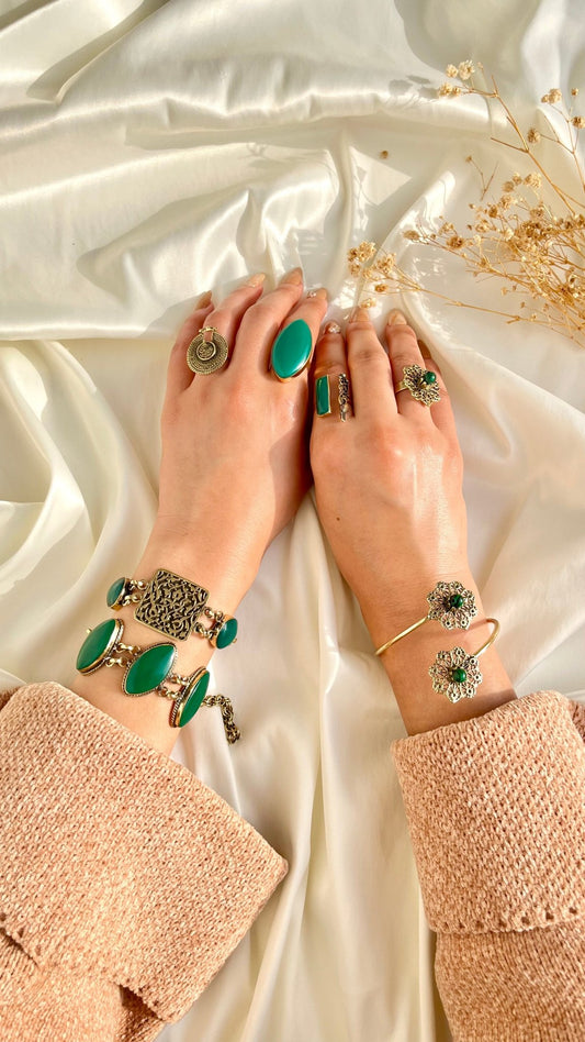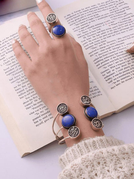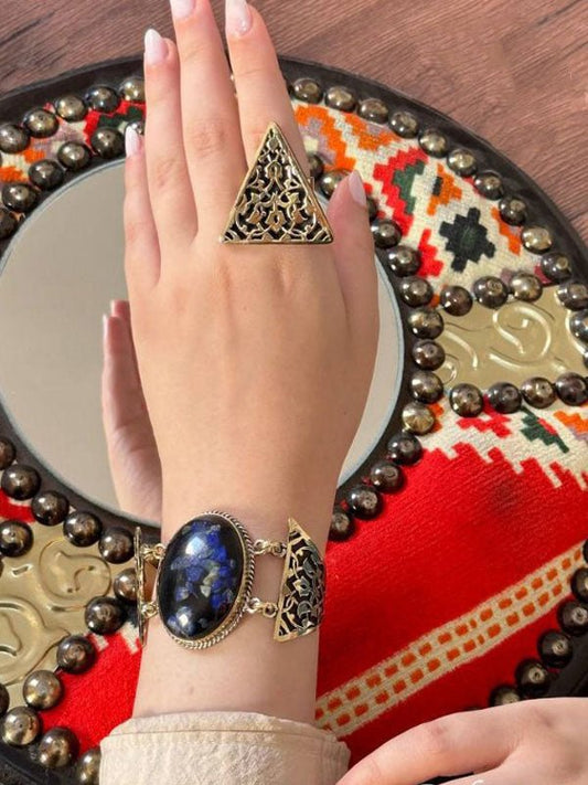 Traditional Arabian Set - Pure Copper with Navy Blue Agate