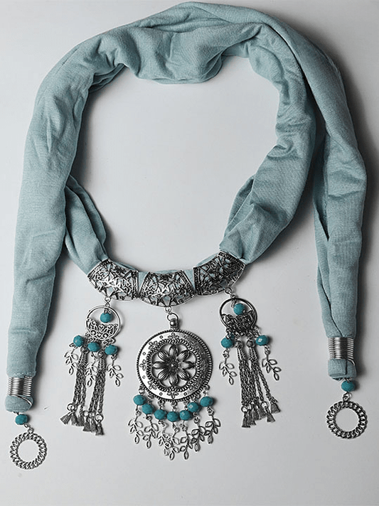 Bella's Flower Necklace Scarf - Turquoise Chiffon