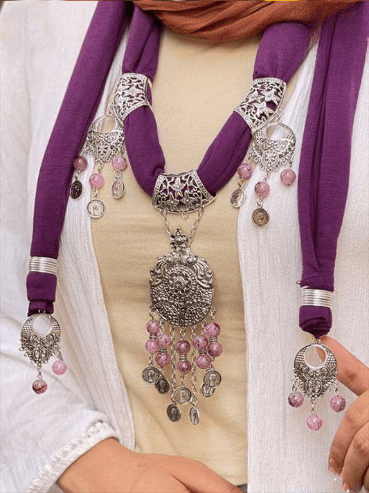Feather Seashell Necklace Scarf - Pink Chiffon