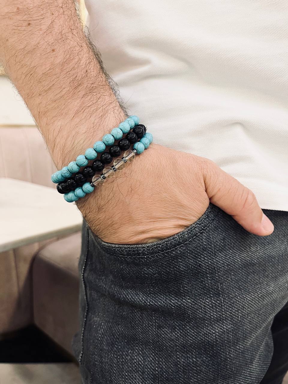 مجموعة من العقيق البني المكسور مع العقيق الأخضر الزيتي