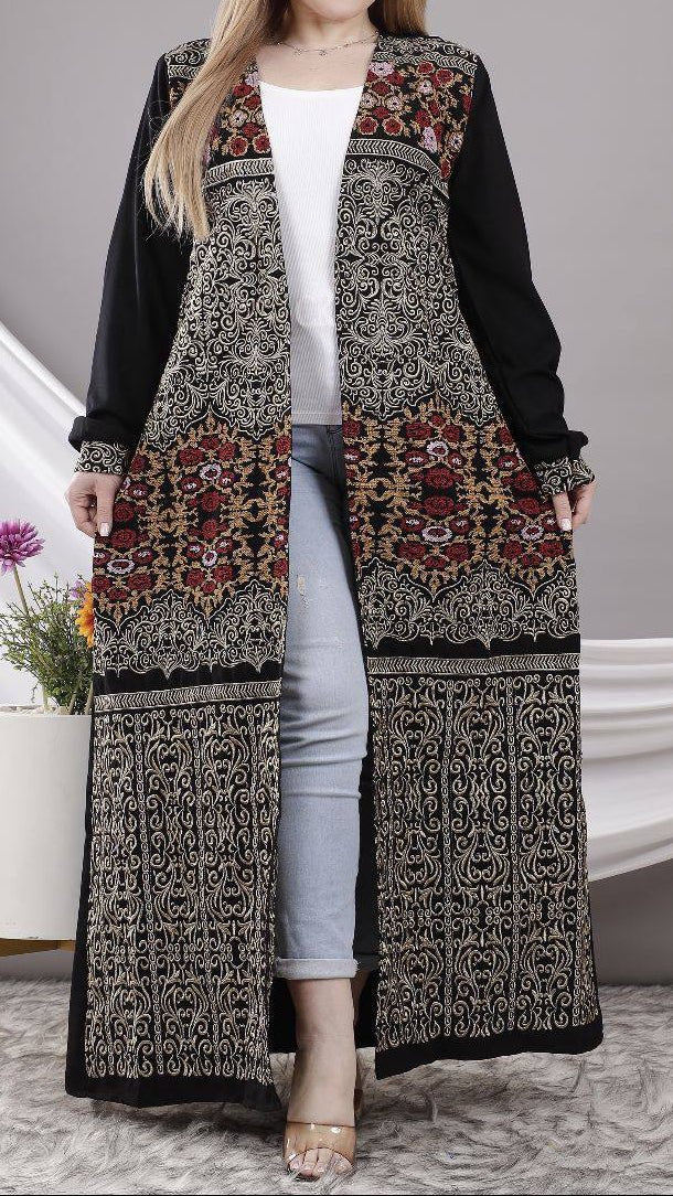 - تطريز على الصدر والأكمام وعلى طول العباءة والظهر