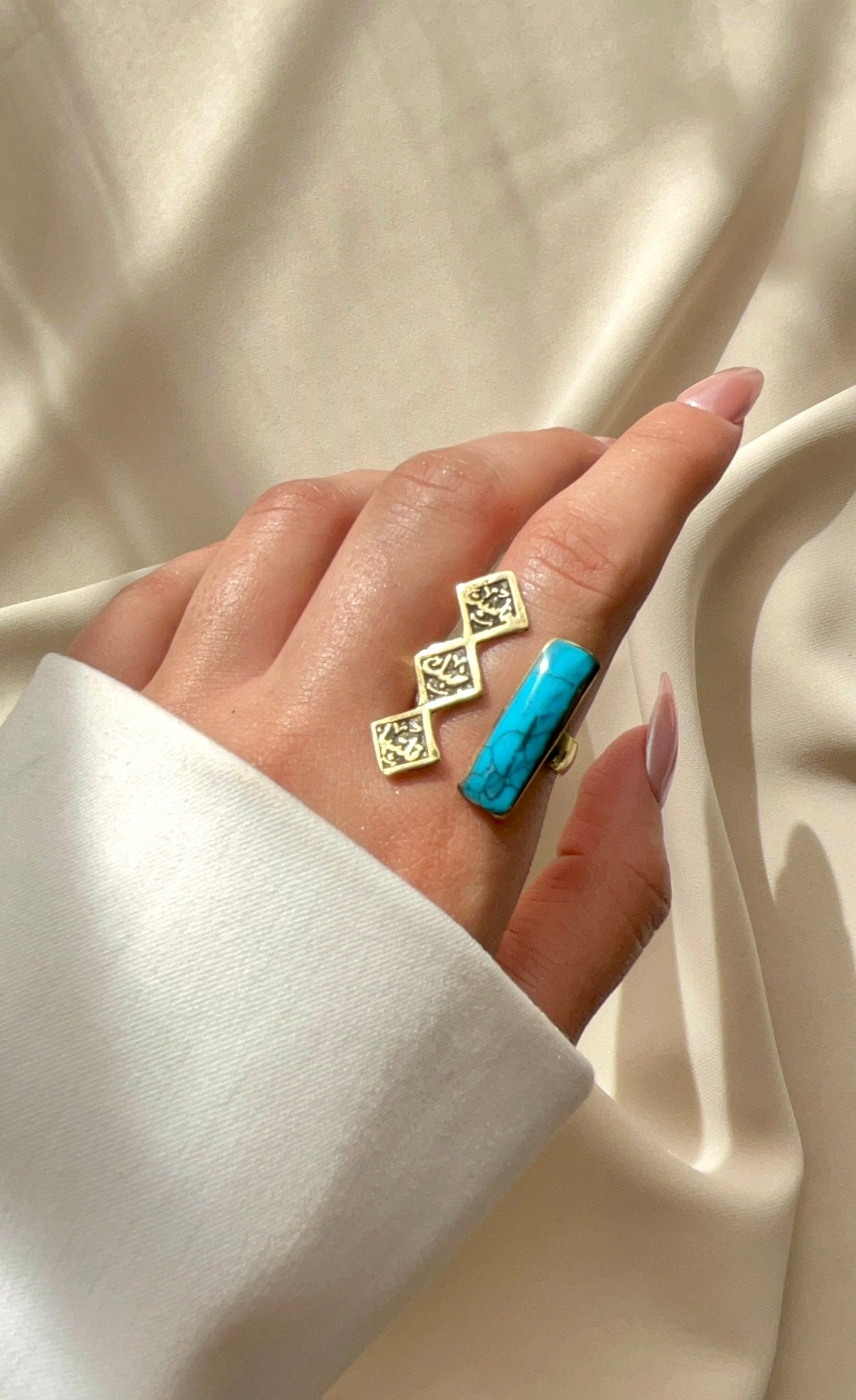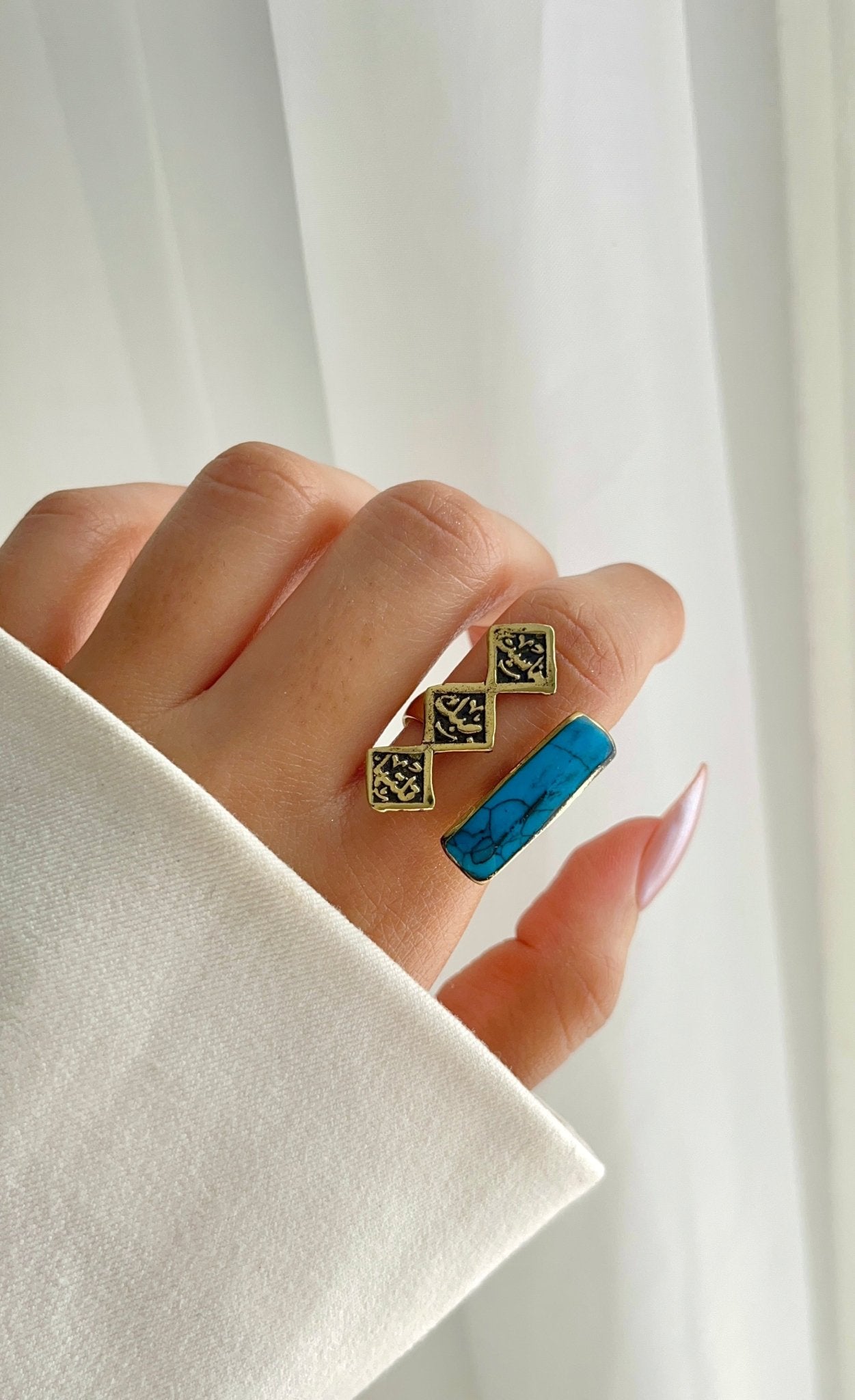 - لون الحجر: فيروزي، أبيض