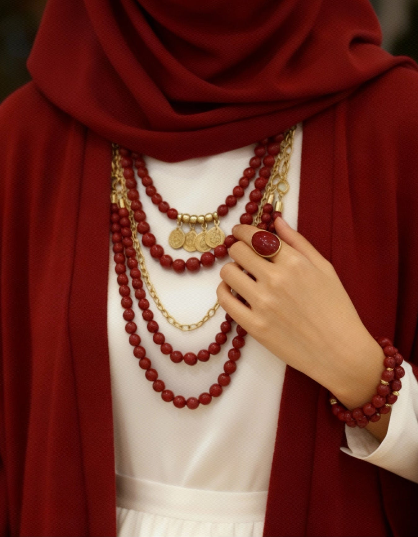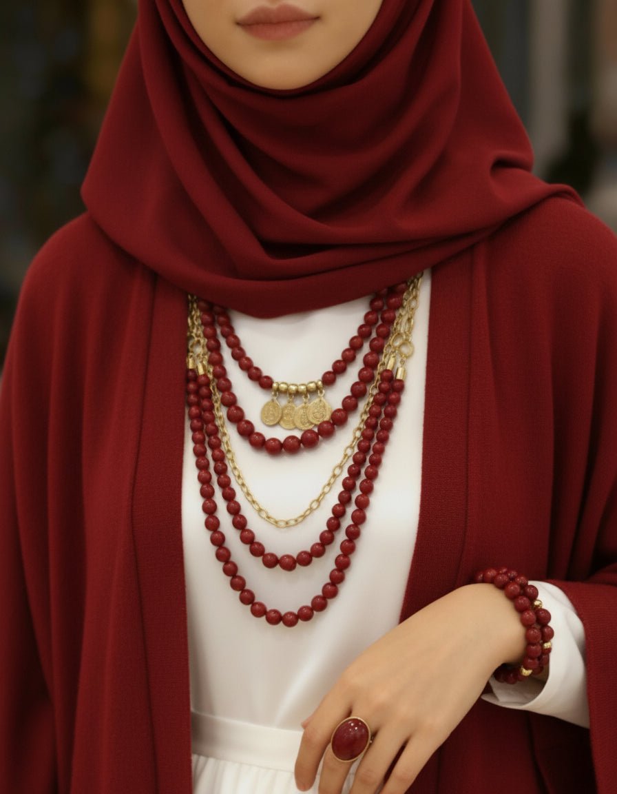 قلادة تشارم حمراء - أحجار مرجان