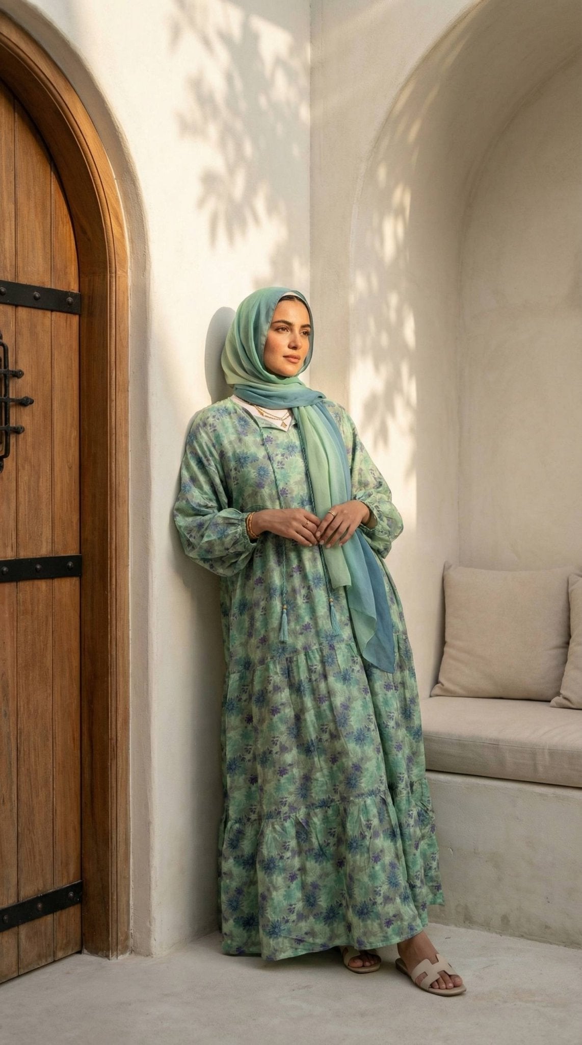 - العباية تحتوي على حزام لضبط المقاس