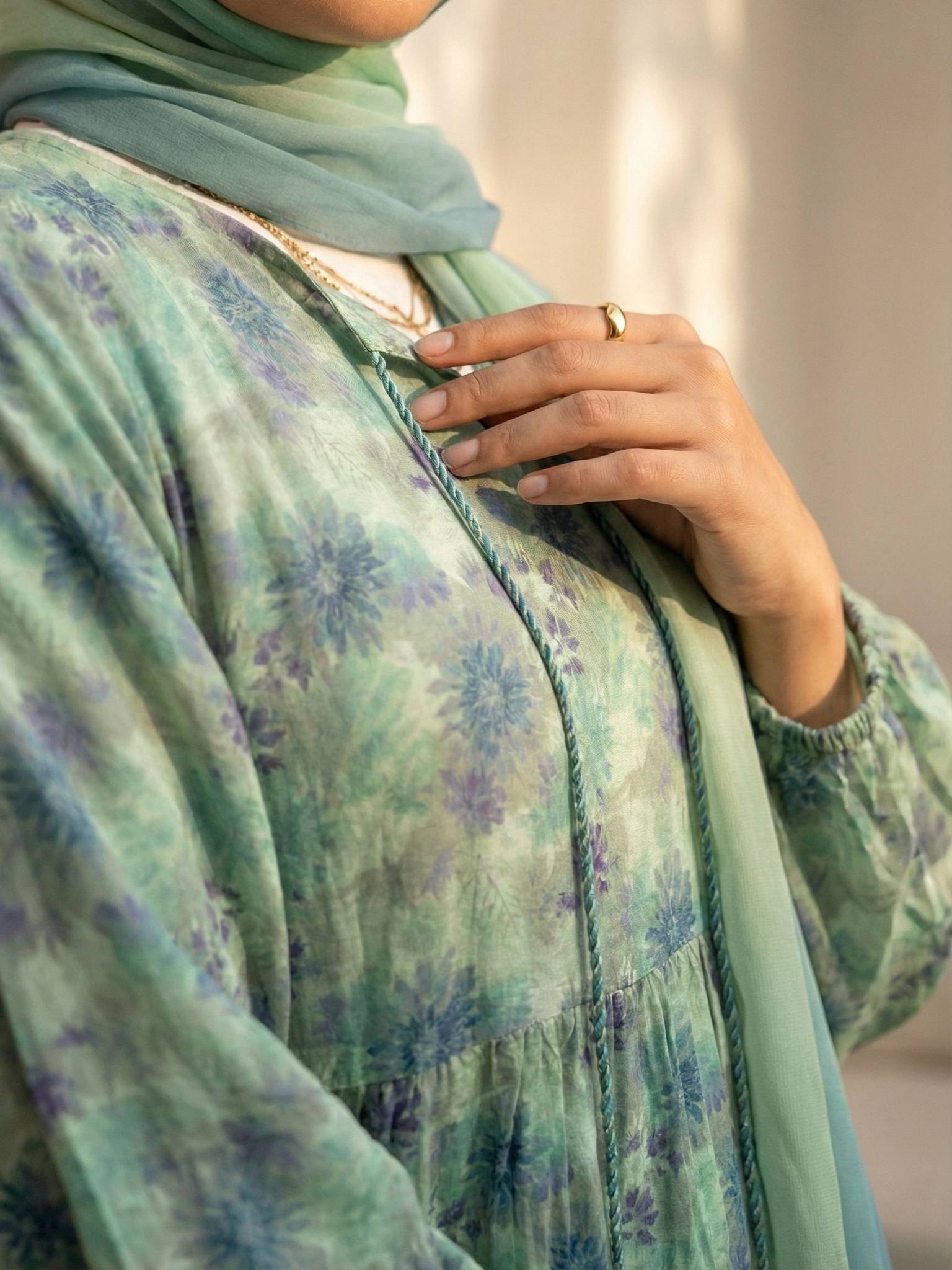 - تطريز على الصدر، الأكمام، على طول العباية والظهر