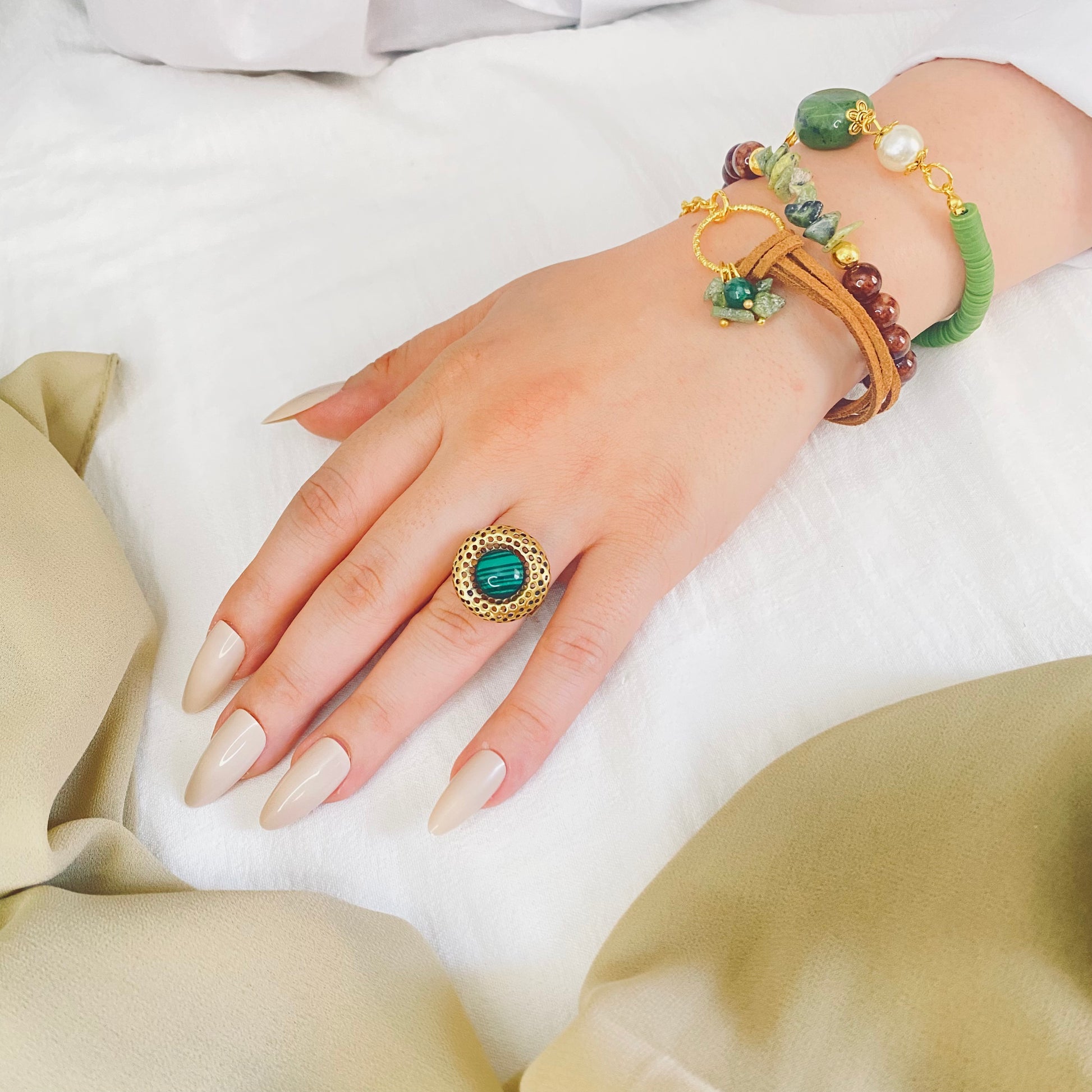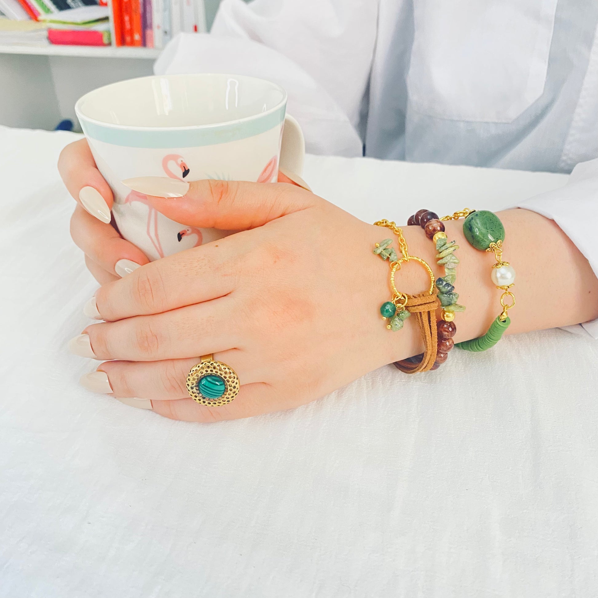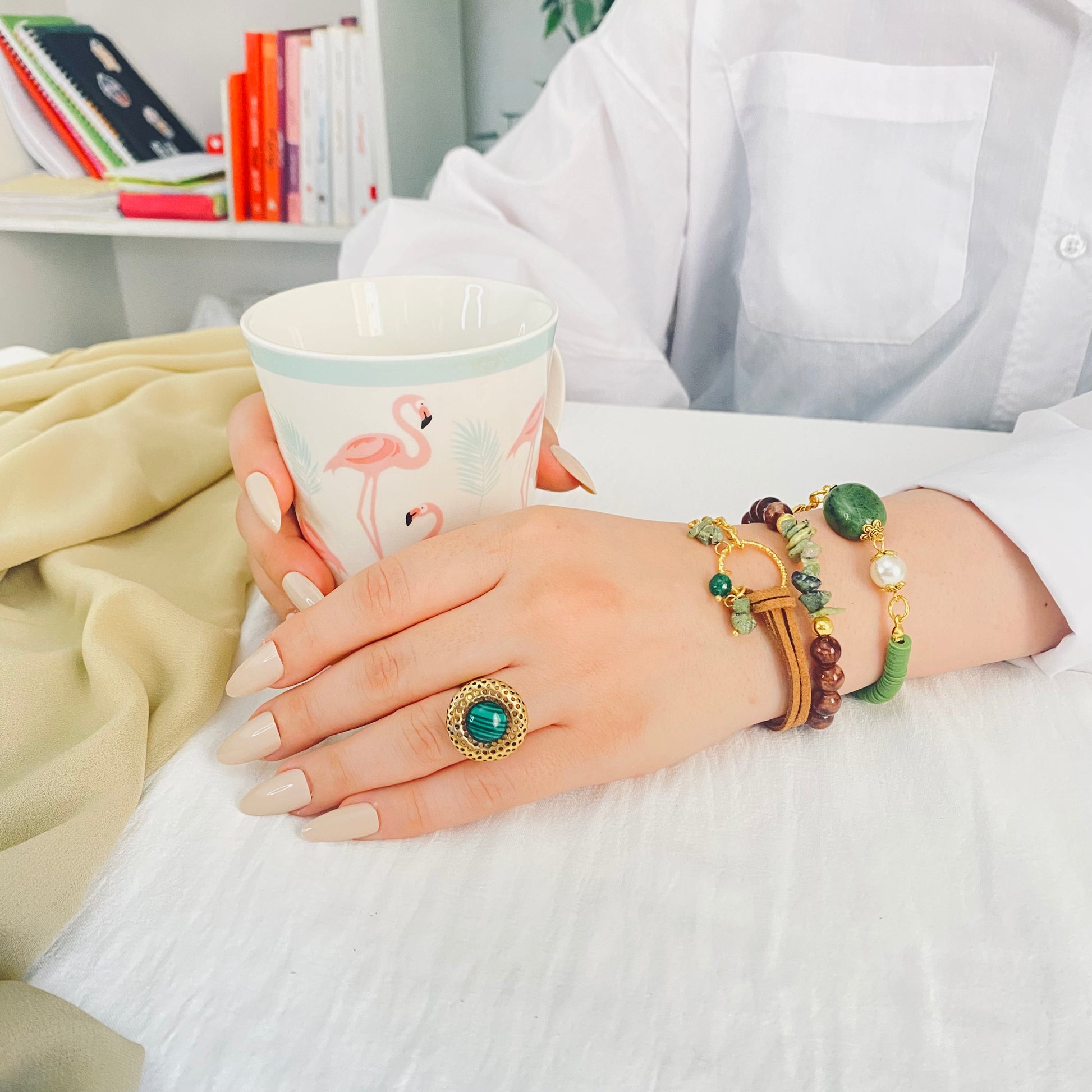 مجموعة من العقيق البني المكسور مع العقيق الأخضر الزيتي