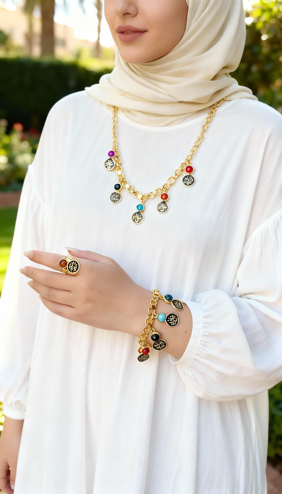 - طقم مكون من ( قلادة - سوار - خاتم )