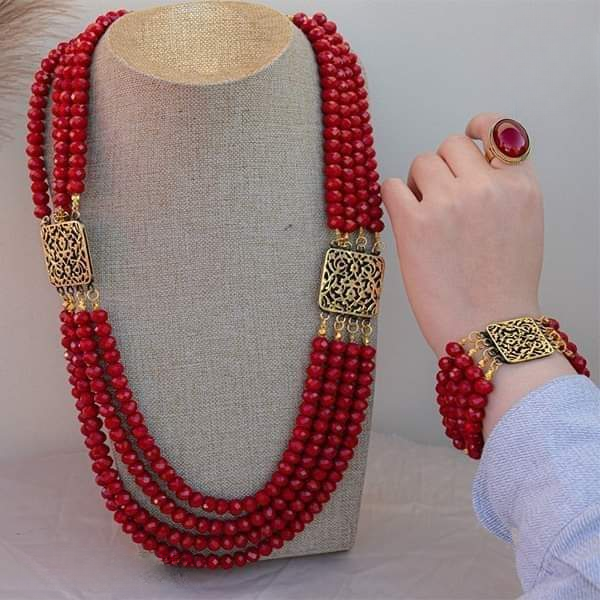 مجموعة من العقيق البني المكسور مع العقيق الأخضر الزيتي