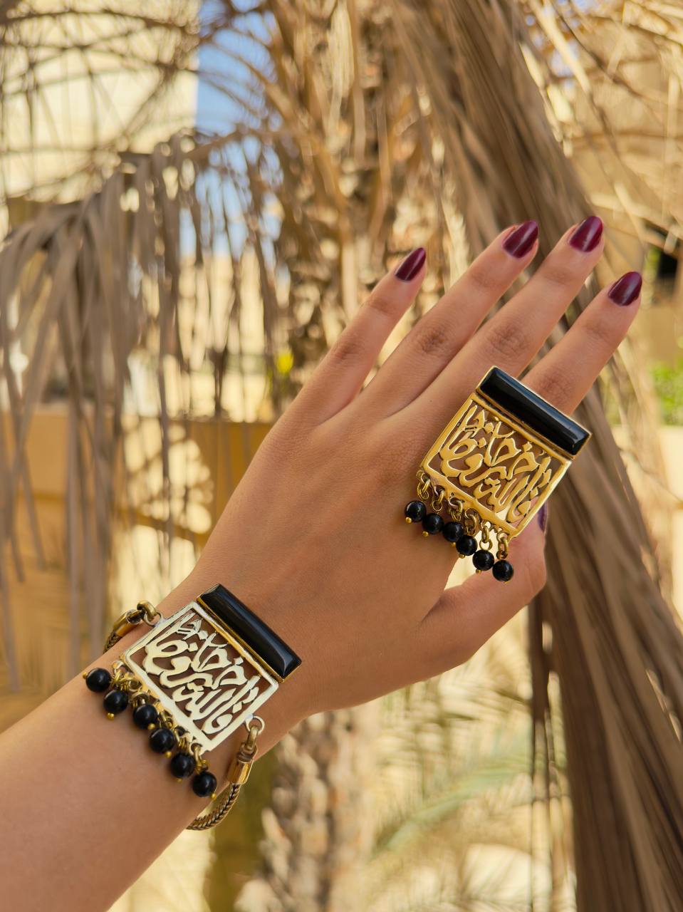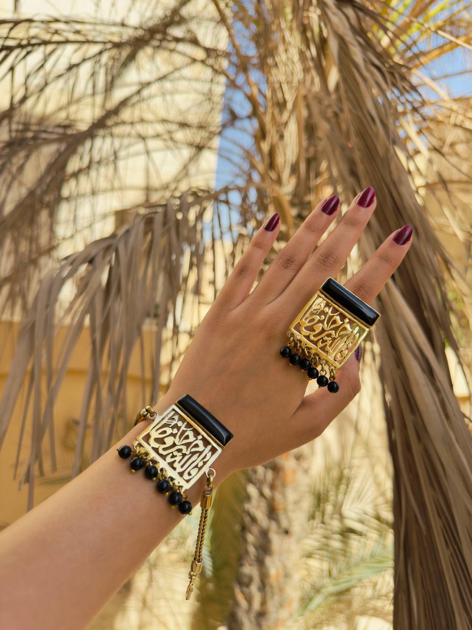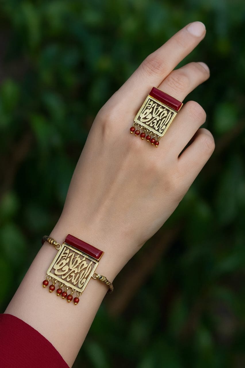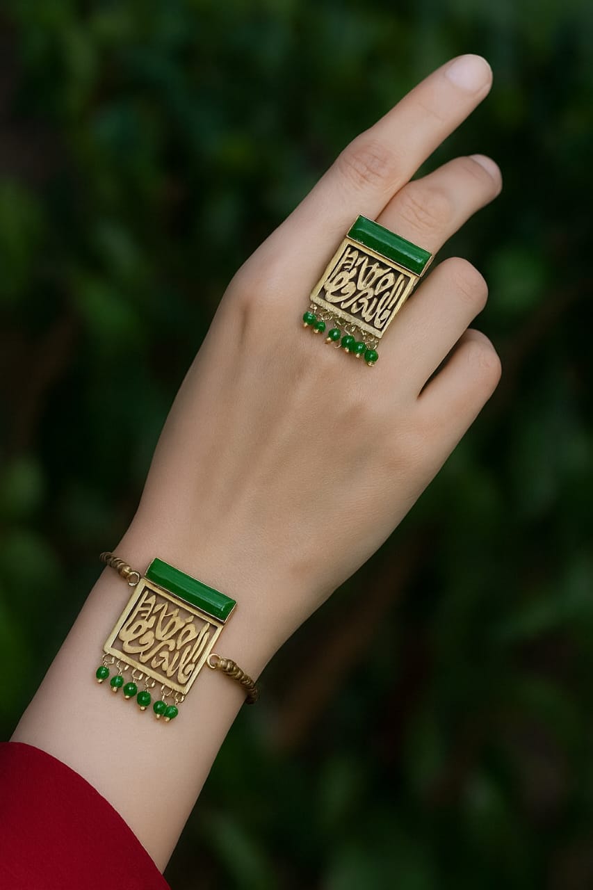 مجموعة من العقيق البني المكسور مع العقيق الأخضر الزيتي