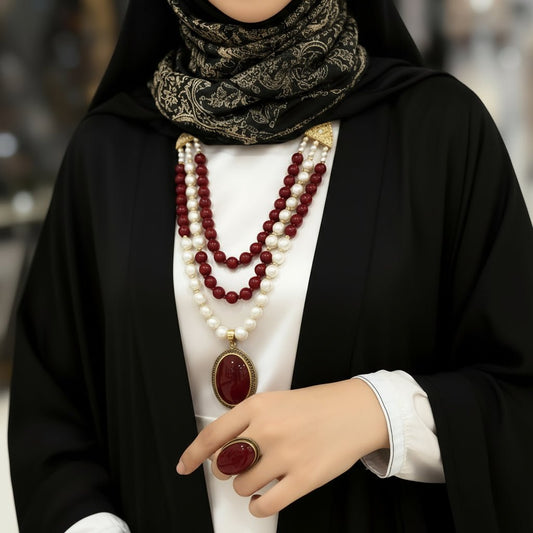 طقم عربي أصيل جديد - مطلي بالفضة والذهب