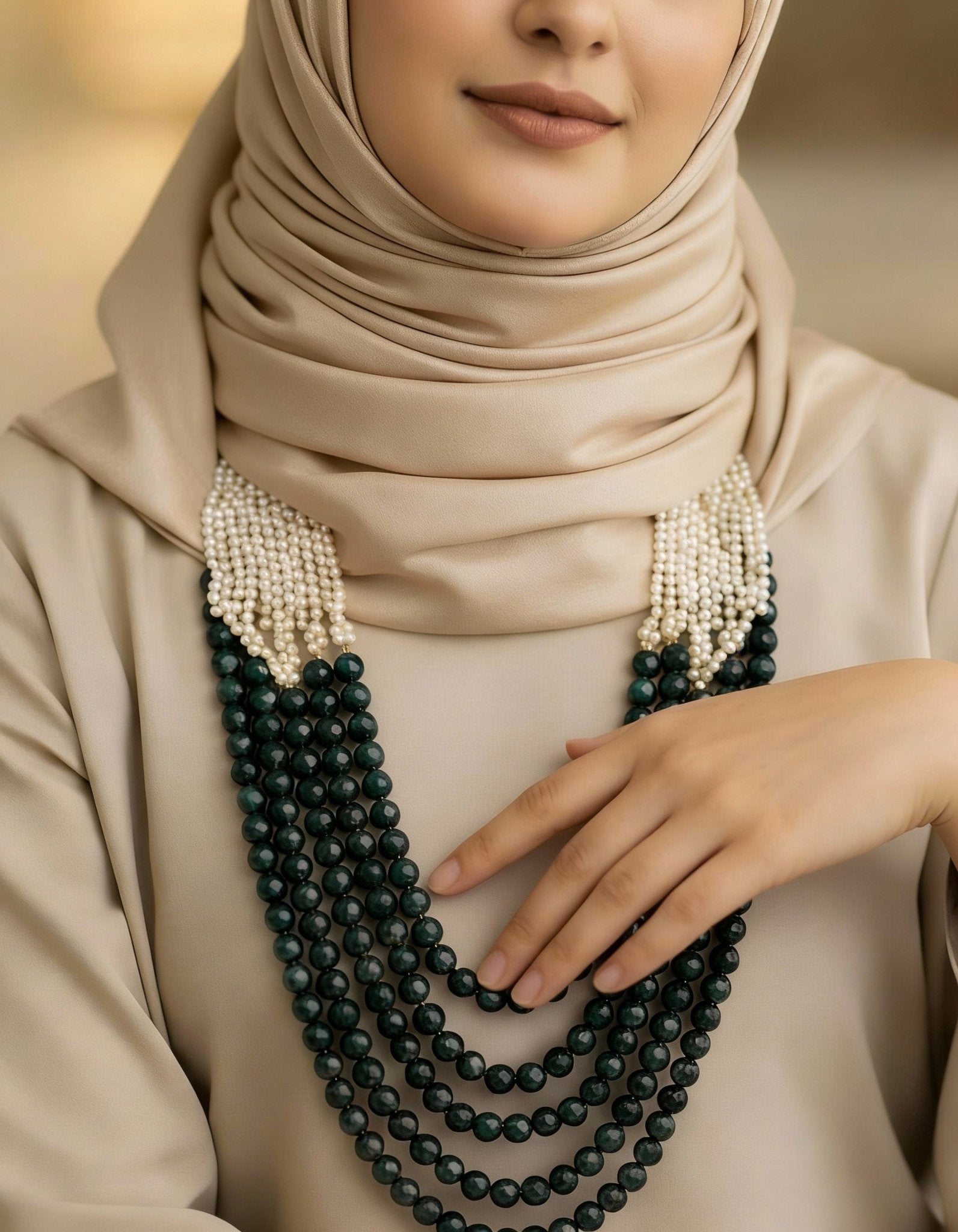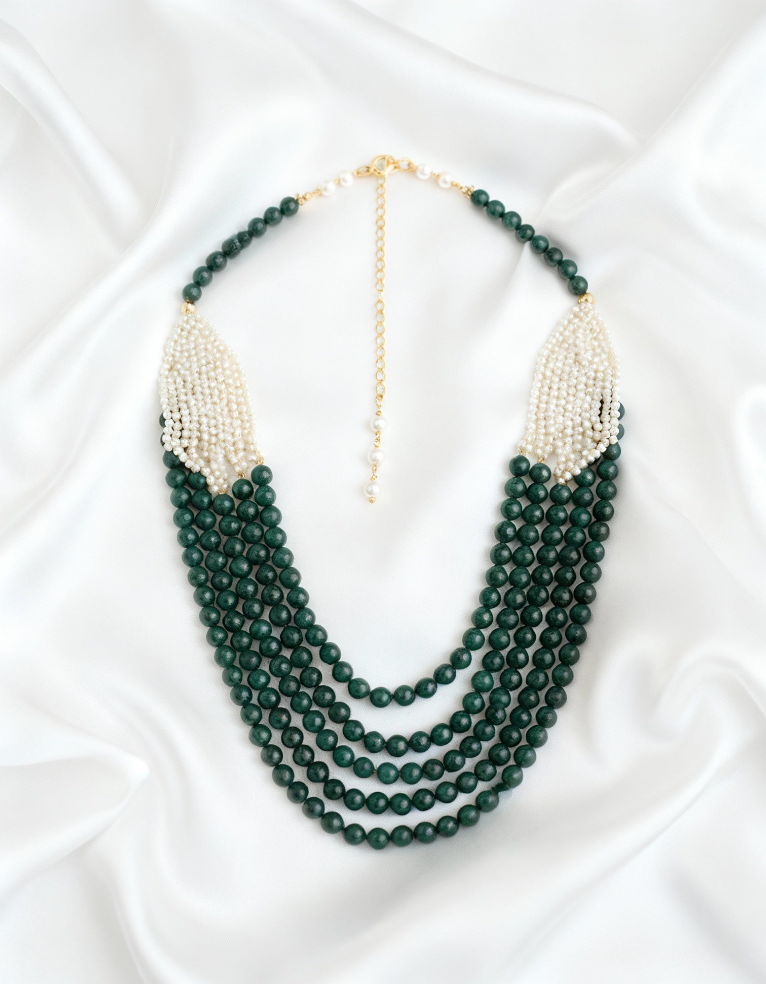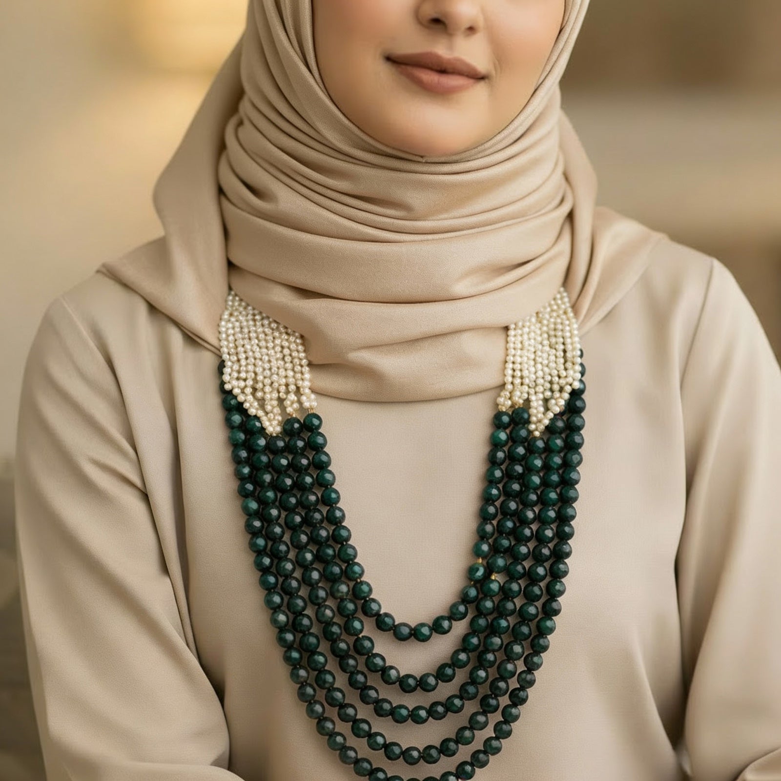 قلادة فاخرة - عقيق أخضر داكن ولؤلؤ