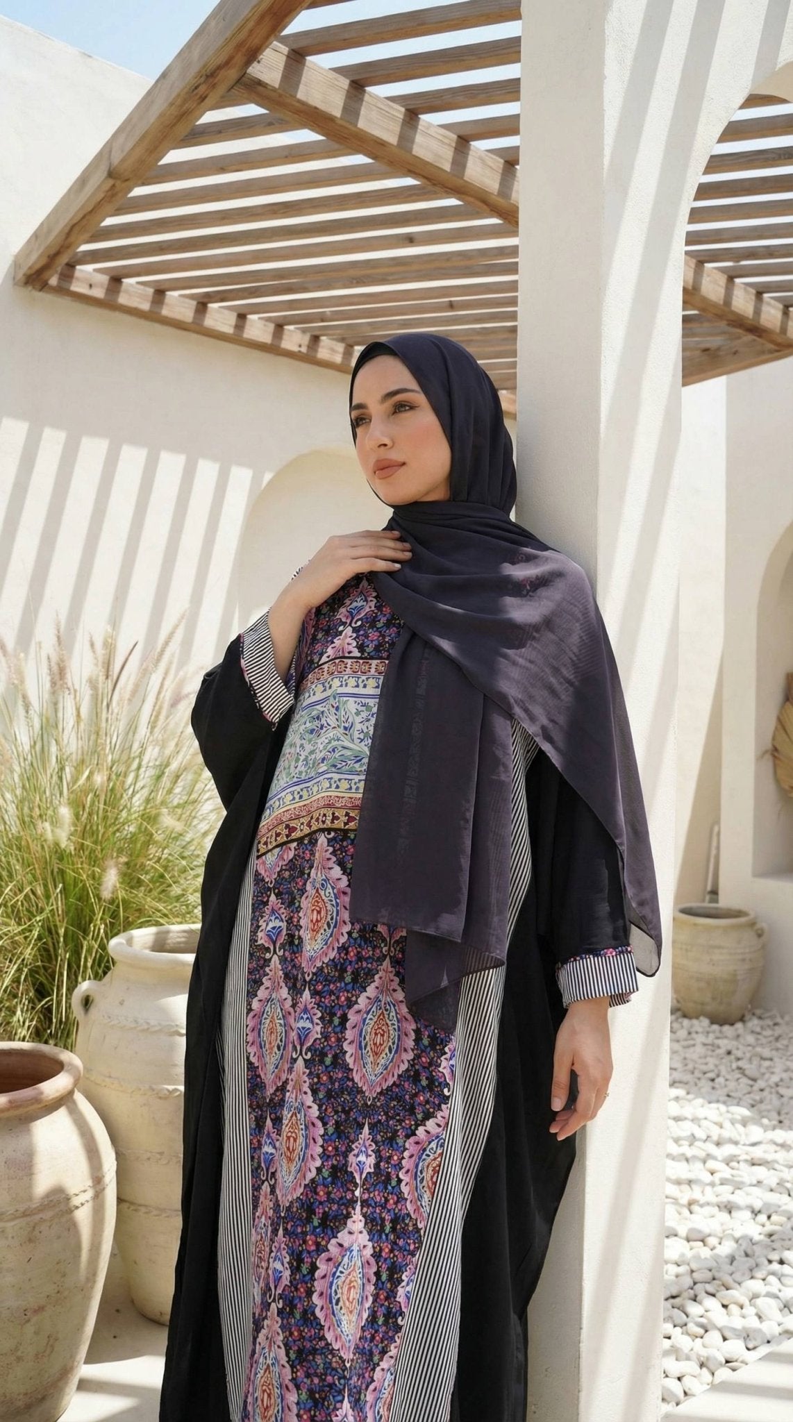 • تطريز على الصدر، الأكمام، على طول العباية والظهر