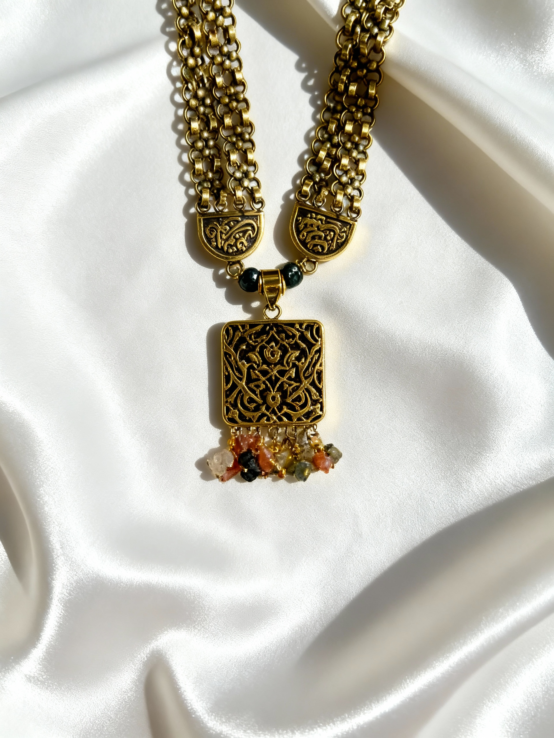 مجموعة من العقيق البني المكسور مع العقيق الأخضر الزيتي