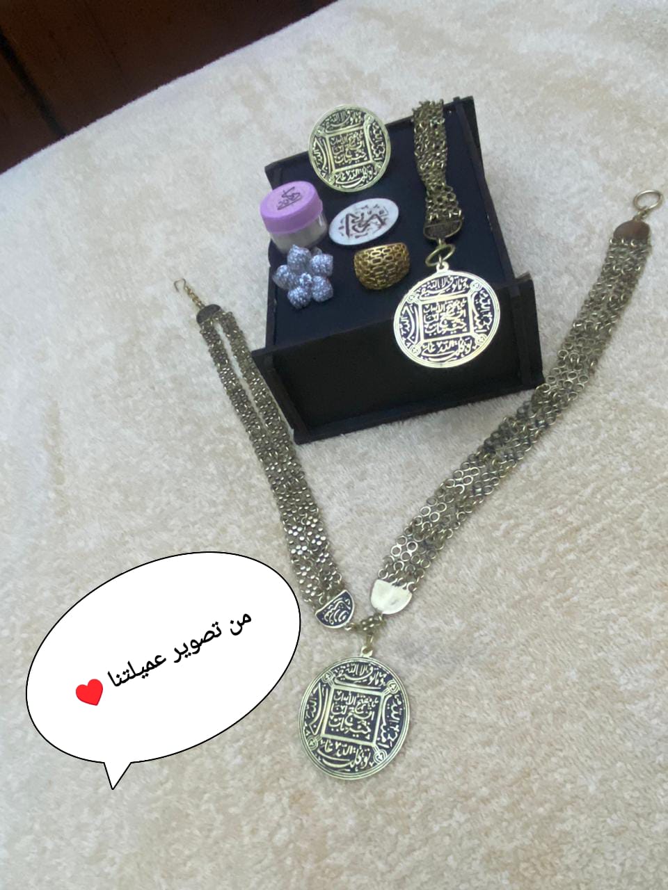- القطع: قلادة، خاتم ، وسوار