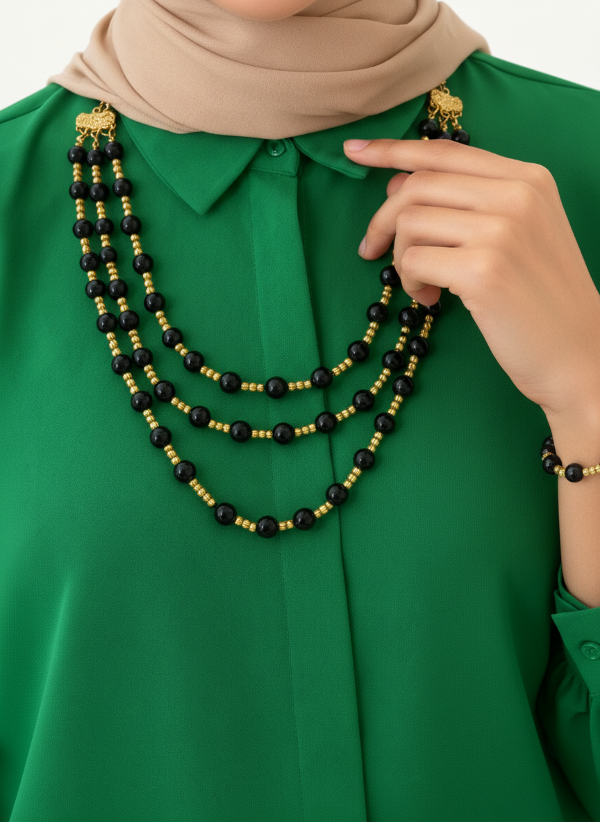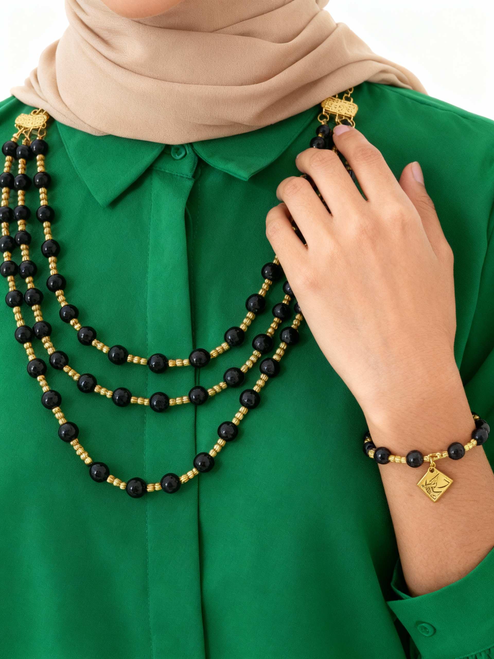 مجموعة من العقيق البني المكسور مع العقيق الأخضر الزيتي