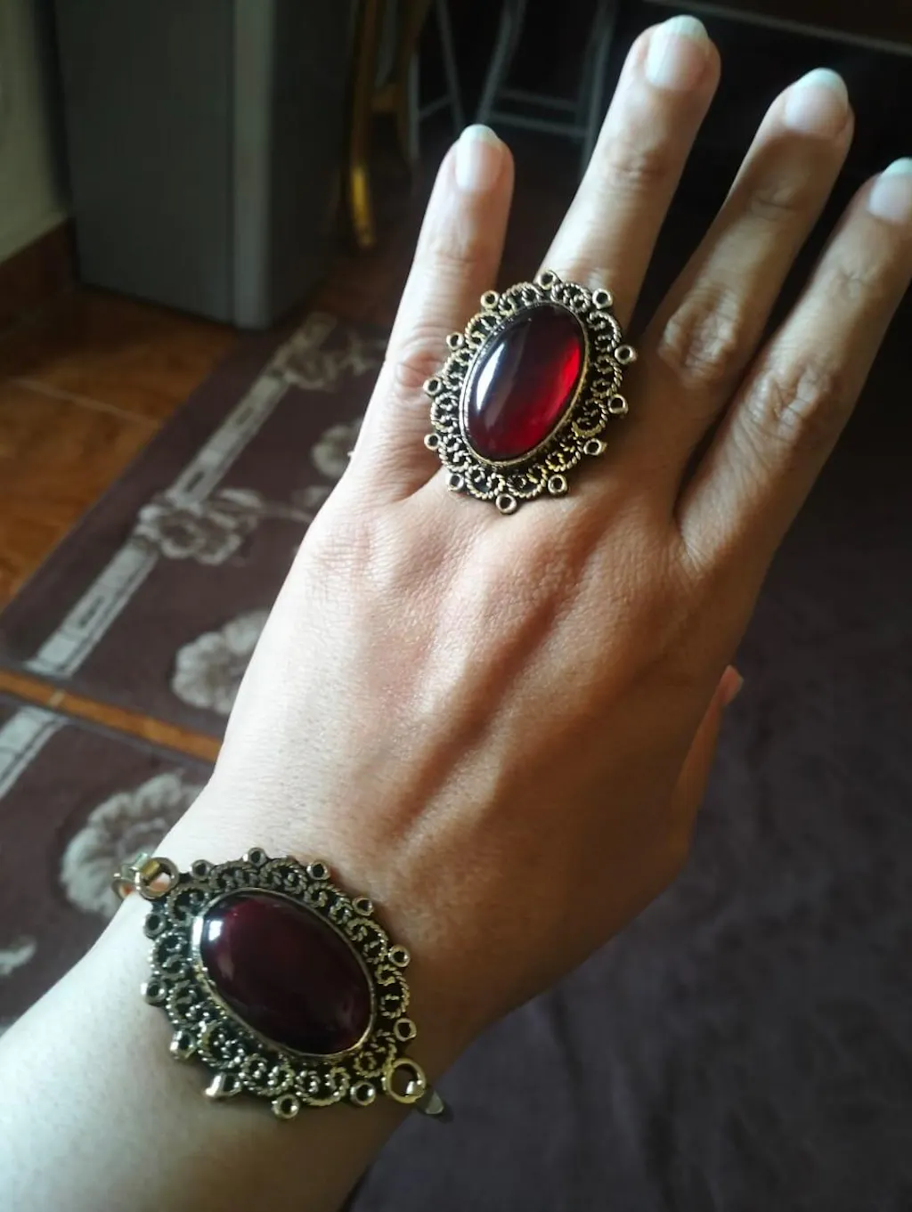 - Stone Color: Black and Red